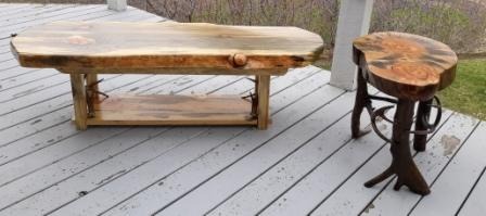 Handcrafted furniture and lumber salvaged from pine trees that were killed by insects on our ranch.